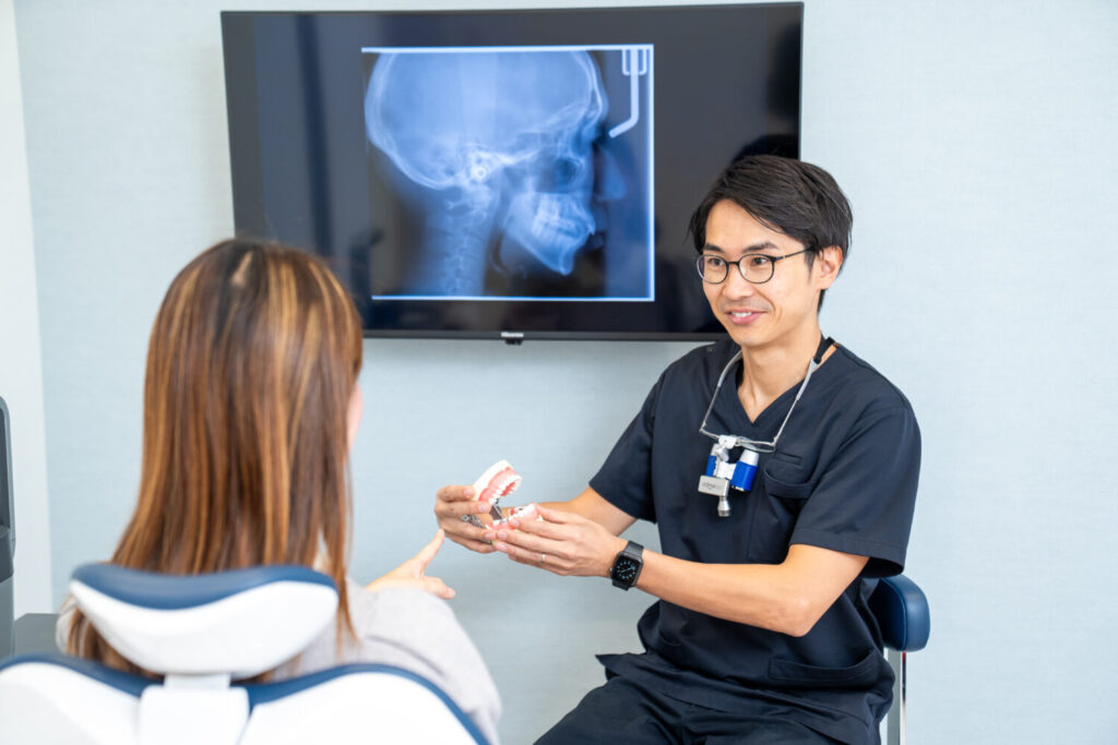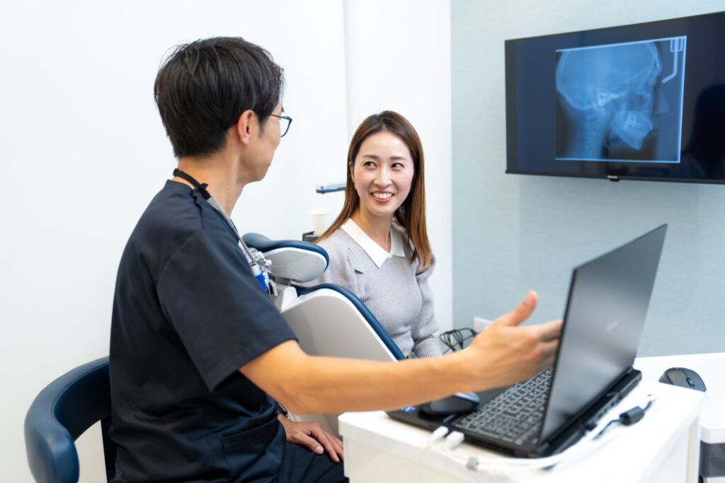 まずは歯並びや咬み合わせの状態、治療へのご希望を丁寧にお伺いします。初めての方でも安心できるよう、治療の流れや費用についてもわかりやすく説明いたします。