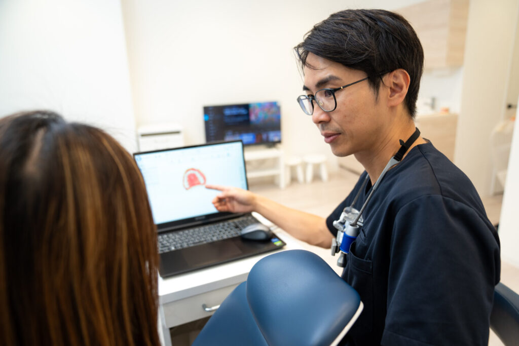 歯列の3Dスキャンやレントゲン撮影を行い、歯や顎の状態を詳しく確認します。このデータをもとに、矯正後の歯並びをシミュレーションします。